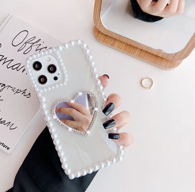 プリンセスハートビジューミラーiphoneケース